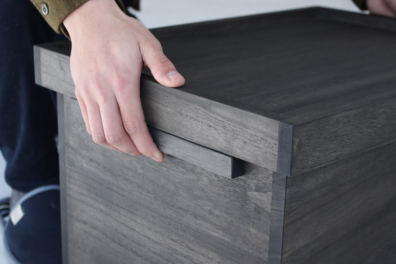 桐箱のフタがトレイの形で物が置きやすく